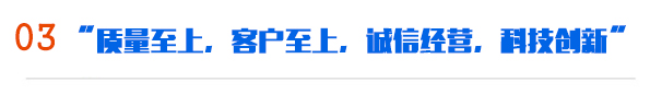 公司一貫奉行“質量至上,客戶至上,誠信經營,科技創新”的經營理念,以好的質量,好的服務,贏得了業界的一致好評和認可,公司總經理攜全體員工真誠歡迎各界朋友蒞臨公司參觀、指導和洽談業務。